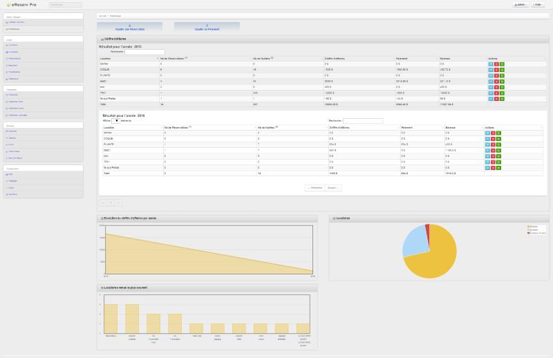 Orientée vers les professionels de la location, eReserv Pro apporte en plus le support des factures avec/sans TVA, la gestion des propriétaires, des saisons, des paiements (PayPal et autres modules), le support des Extra...